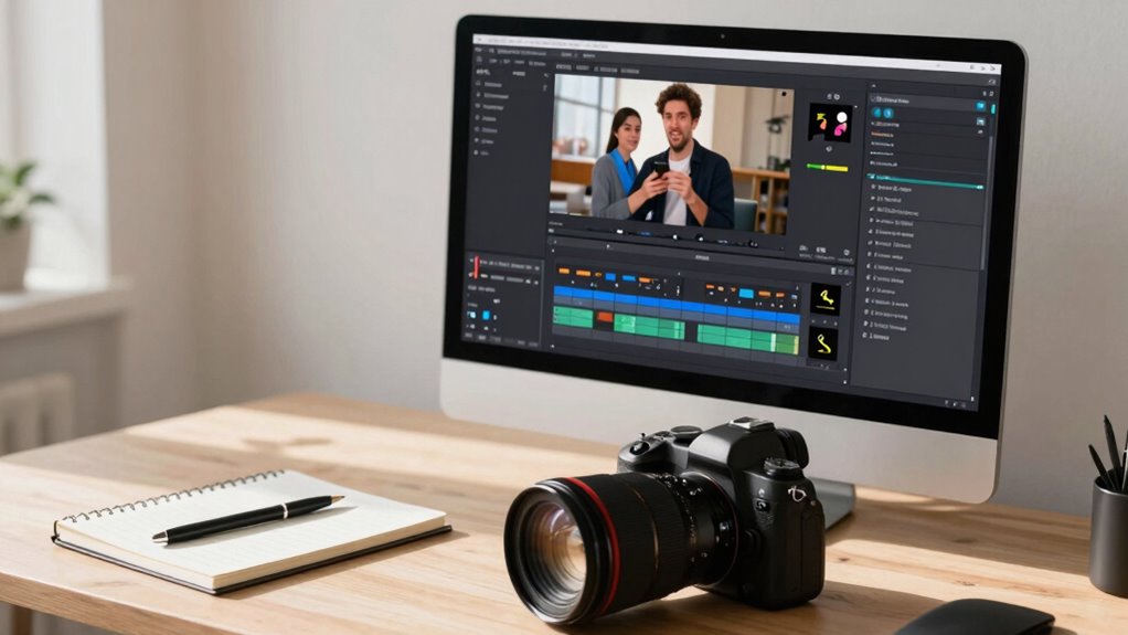 Getting your export settings right is essential—over 80% of social videos lose quality during upload. By choosing the right codec, resolution, and bitrate, you guarantee your clips look sharp and load quickly. Keep these tips in mind, and you’ll avoid common mistakes that can ruin your video’s impact. Take control of your export process, and watch your social clips stand out with professional polish and flawless playback every time.