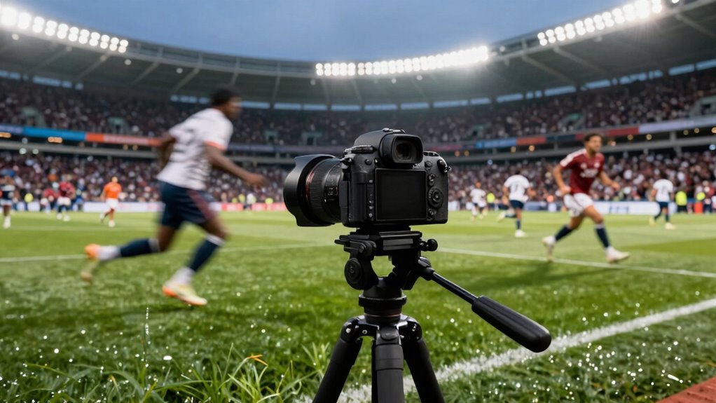When it comes to capturing the fast-paced action of football, choosing the right camera can make all the difference. You might think it’s all about the latest model or the most expensive gear, but there are subtleties that can elevate your game. One of the most essential aspects to take into account is lens selection. A good lens can help you capture those fleeting moments with clarity. Fast telephoto lenses, for instance, allow you to zoom in on the action from the sidelines, keeping players in focus while blurring the background. This creates a dramatic effect, drawing attention to the athletes as they maneuver across the field.